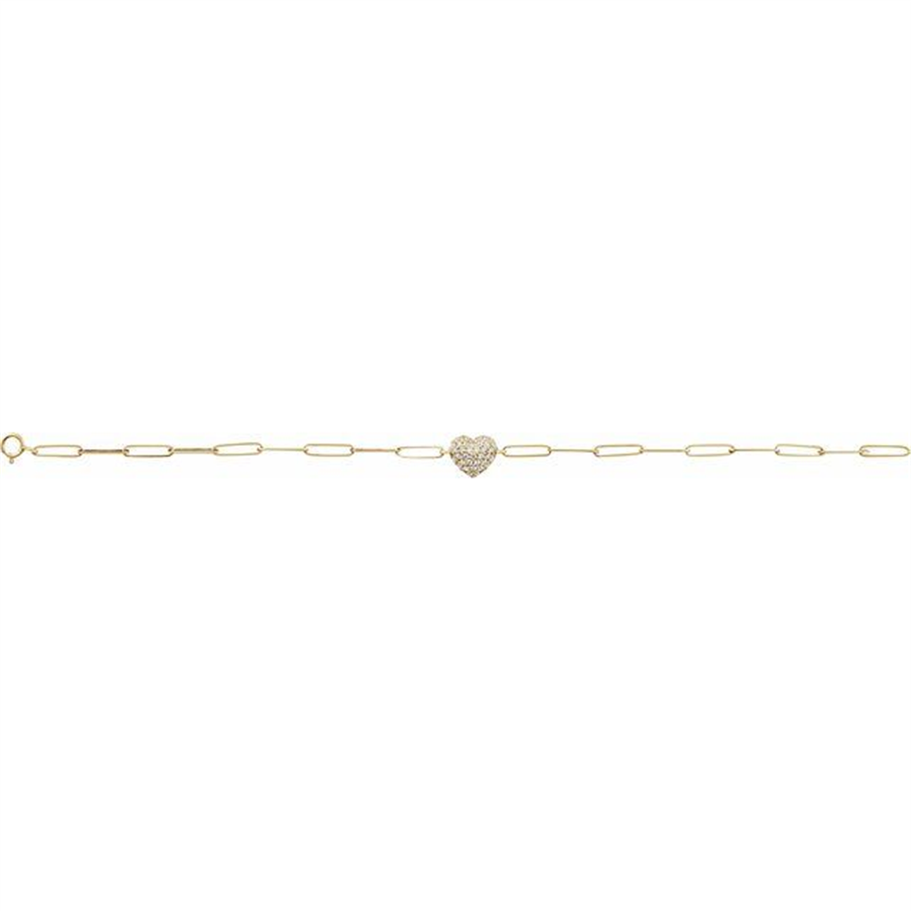 This Exquisite 14K Yellow Gold Puffed Diamond Heart Charm Paper Clip Link Bracelet Sparkles With Sophistication And Style. Crafted From 14K Yellow Gold, This Bracelet Features (37) 0.33 Twt Round Cut Diamonds, With G/H In Color And I1 In Clarity. This Bracelet Is The Perfect Valentines Day Gift And Can Be Worn For Any Occasion!