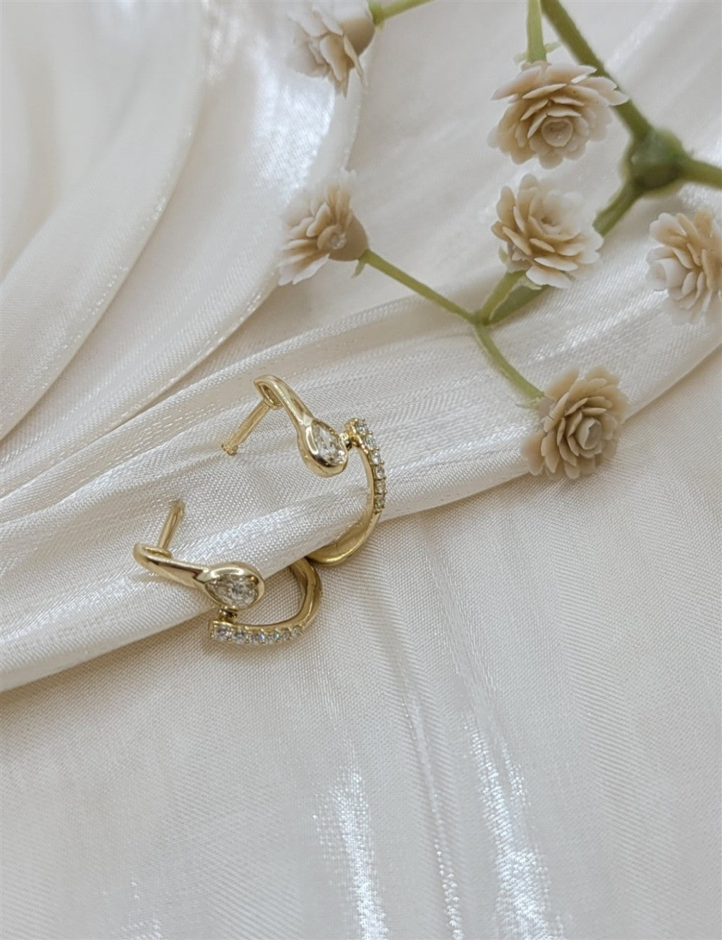 These Beautiful 14K Yellow Gold Diamond Hoop Earrings Will Catch Anyone's Attention. Crafted From 14K Yellow Gold, These Earrings Feature (2) 0.23 Twt Pear Cut Diamonds, With G/H In Color And Si1-2 In Clarity. They Also Feature (12) .07 Twt Round Diamonds, With G-H In Color And Si1-2 In Clarity. Come By And Try On These Stunning Earrings Today!